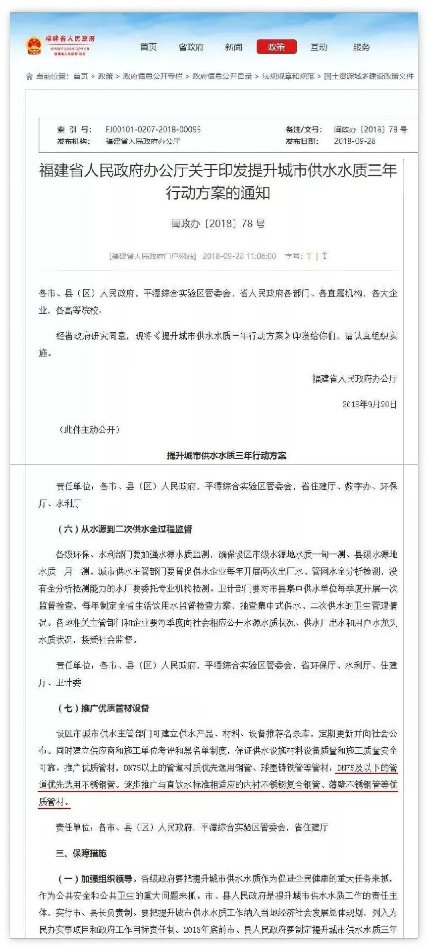 十九大報(bào)告中指出,中國(guó)社會(huì)主要矛盾已經(jīng)轉(zhuǎn)化為人民日益增長(zhǎng)的美好生活需要和不平衡不充分發(fā)展之間的矛盾。不銹鋼水管是滿(mǎn)足人民追求美好生活的好產(chǎn)品,也是改革中城市化進(jìn)程的好供給。近年來(lái),國(guó)家以及有關(guān)部門(mén)高度重視居民用水安全和飲水衛(wèi)生,相繼發(fā)布“應(yīng)用不銹鋼管道”的相關(guān)政策以及公告。